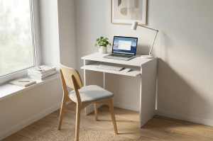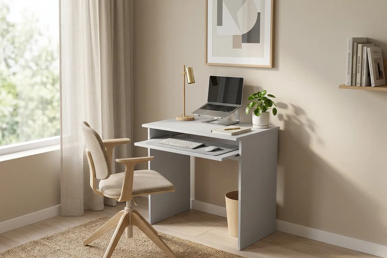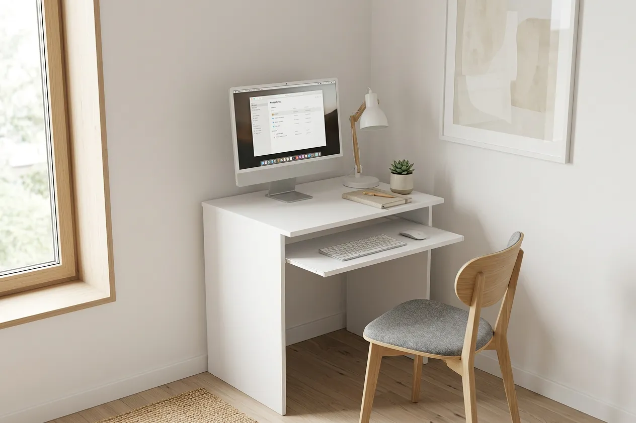 Biurko w kolorze BIAŁYM z wysuwaną półką (metalowe prowadnice rolkowe) wykonane z wysokiej