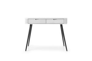 Toaletka biała ryflowana na czarnych metalowych nogach to stylowy i funkcjonalny mebel do sypialni. Wyposażona w praktyczne szuflady, sprawdzi się również jako konsola lub sekretarzyk. Eleganckie ryflowanie i kontrastowe nogi nadają jej nowoczesny charakter.